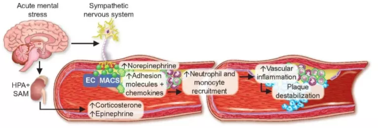 德國慕尼黑工業(yè)大學的研究人員發(fā)現(xiàn),生氣、憤怒、沮喪等(急性精神壓力下)會通過壓力激素,讓血液中的炎癥性白細胞遷移到主動脈,導致動脈中的粥樣硬化斑塊破裂。