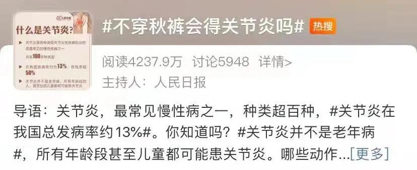 所以不穿秋褲并不是得關(guān)節(jié)炎的原因!