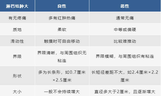 除了有無痛感外,淋巴結(jié)的滑動(dòng)性、質(zhì)地、與周圍組織的界限等,也是判斷其性質(zhì)的重要依據(jù):