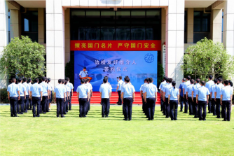 溫州機(jī)場出入境邊防檢查站站長劉浩與豪孟德、蘇瑪夫婦簽約,并為他們頒發(fā)榮譽(yù)聘書。
