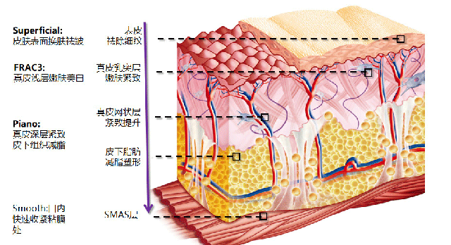 采用射頻技術(shù)發(fā)射高頻能量作用于人體皮膚,重塑膠原纖維,達(dá)到膠原纖維收縮和新生膠原纖維沉積的目的,也就是緊致。